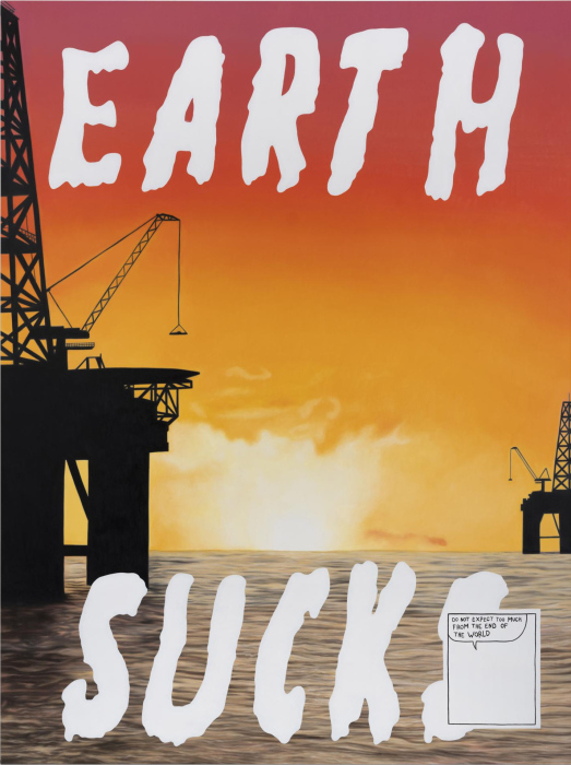 I presented a group of six new oil paintings. This new series, titled A Brief History of Humanity and How It Will End, revolves around questions related to the notion of crisis. Based on digital collages, the works draw from an iconographic research into “poor images” — those from popular culture, advertising, Hollywood films, and memes — all these images that flood our perception and shape how we see the world, yet are almost instantly forgotten.