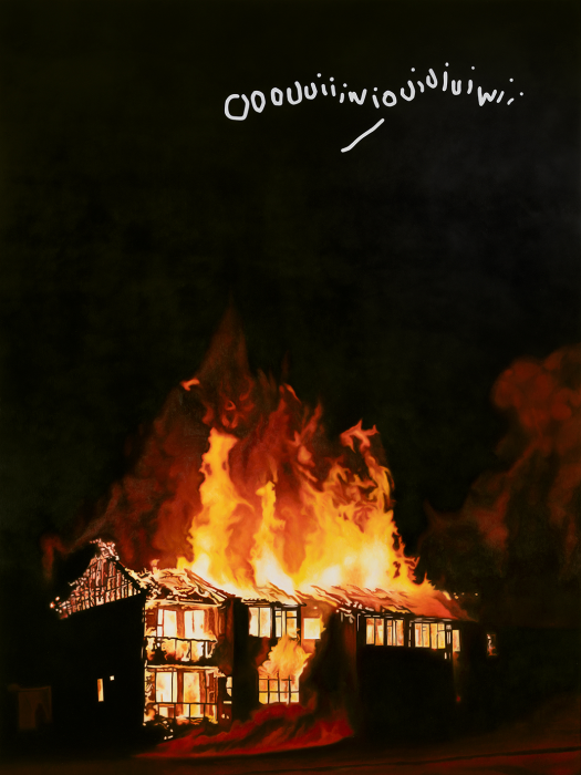 “Don’t expect too much from the end of the world. This injunction to caution—somewhat vague—discreetly formulated, almost whispered by one of the paintings in the exhibition, is at first rather enigmatic. It could be seen as a millenarian equivalent of “Don’t put all your eggs in one basket.” It might even serve, why not, as a popular saying for the Age of Collapse (spoiler: it’s ours). But everything becomes clearer when it is interpreted within the specific context of Western pop visual culture: it may well be that the end of the world will produce no beautiful images, no grand scenes, no admirable spectacle."