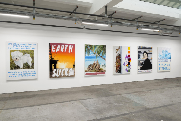I presented a group of six new oil paintings. This new series, titled A Brief History of Humanity and How It Will End, revolves around questions related to the notion of crisis. Based on digital collages, the works draw from an iconographic research into “poor images” — those from popular culture, advertising, Hollywood films, and memes — all these images that flood our perception and shape how we see the world, yet are almost instantly forgotten.
